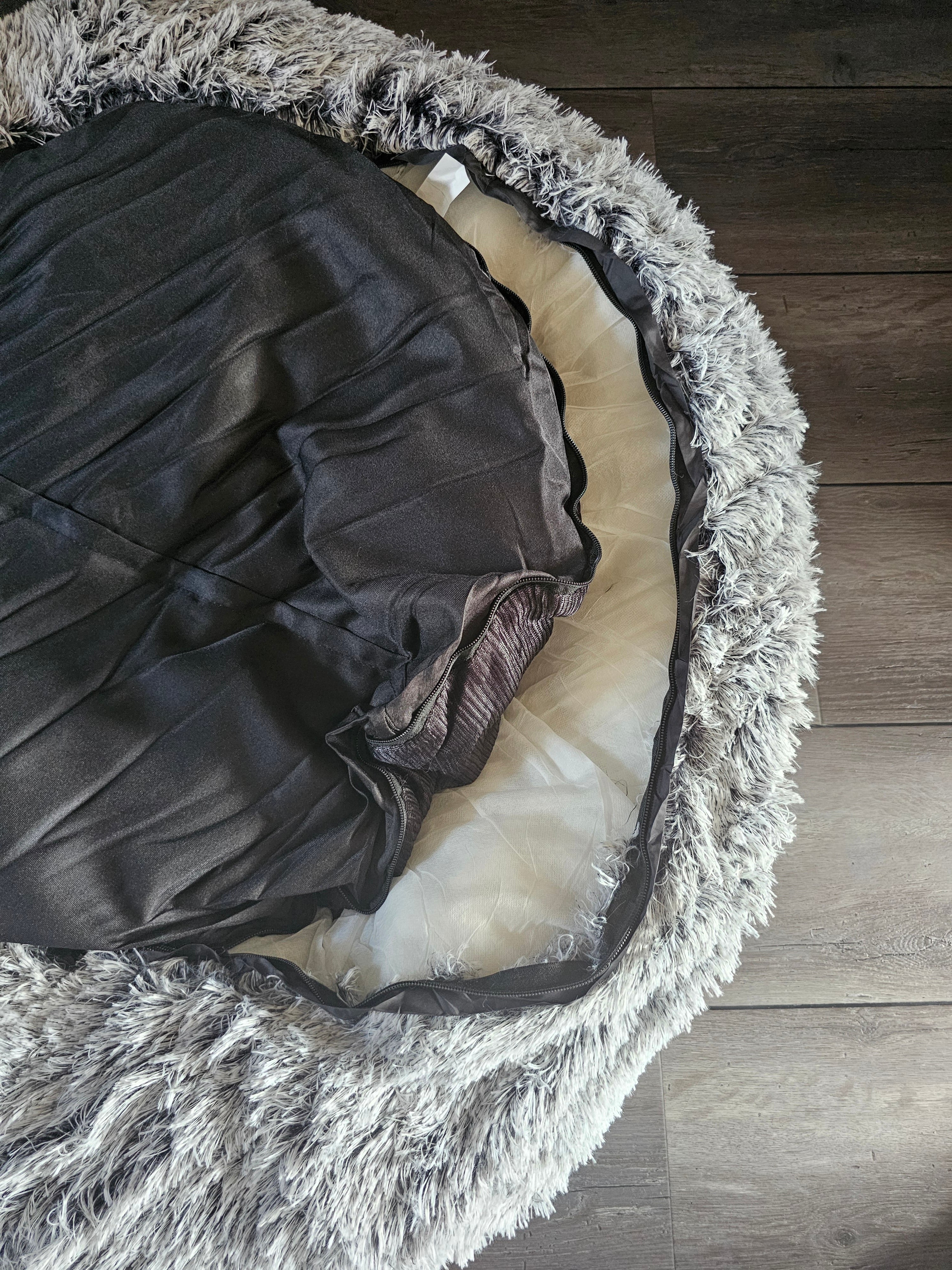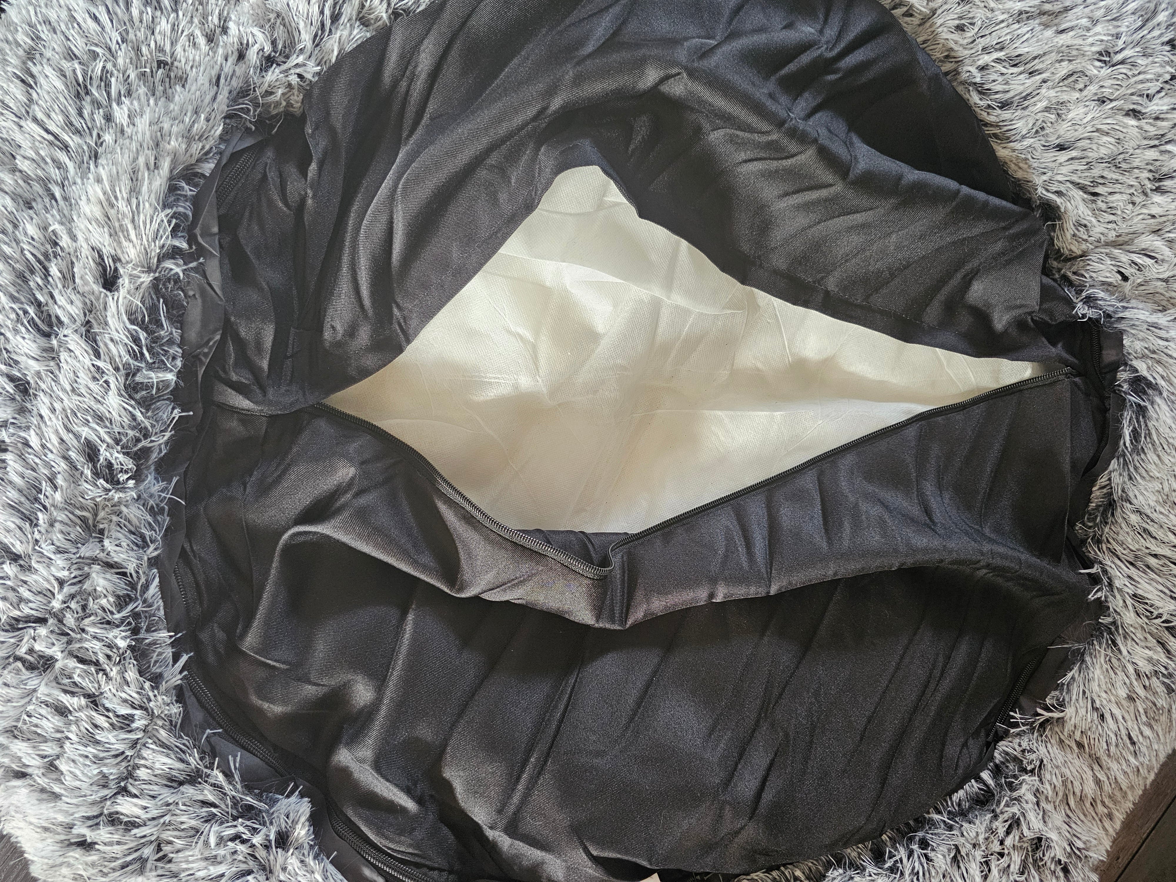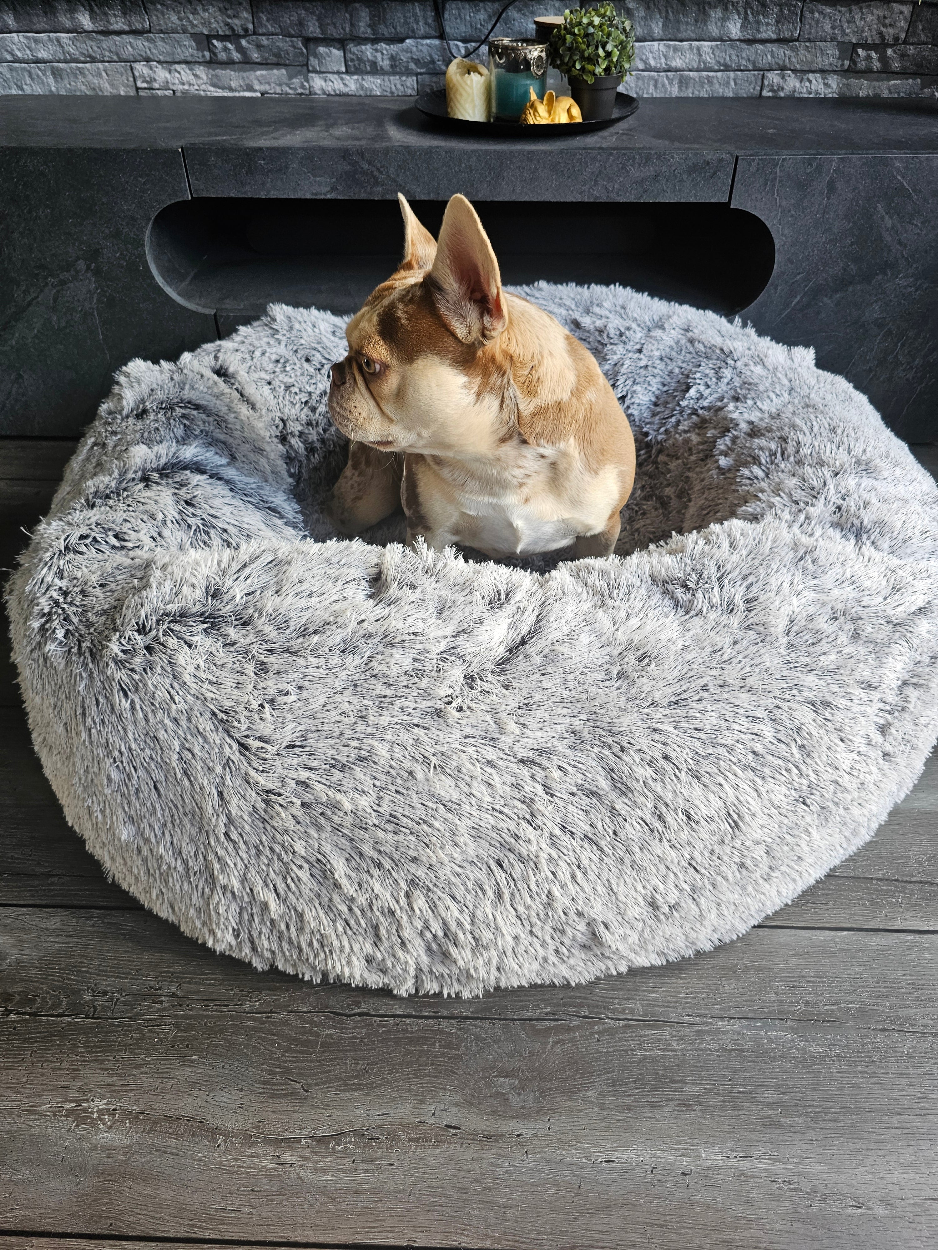 De Croci Hondenmand XL Donut Bicolor Grijs is een zachte mand in donutvorm, speciaal ontworpen om jouw hond een geborgen en comfortabele rustplek te bieden. De verhoogde randen ondersteunen het hoofd en creëren een veilig nestgevoel, wat helpt om stress te verminderen. Gemaakt van superzacht pluche, waarin je hond zich heerlijk kan oprollen voor een dutje of een lange slaap. Dankzij de stevige vulling blijft de mand mooi in vorm en is hij langdurig te gebruiken. De hoes is dankzij 2 ritsen aan de onderzijde compleet afneembaar en wasbaar op 30 graden in de wasmachine, wat het schoonmaken eenvoudig maakt.
