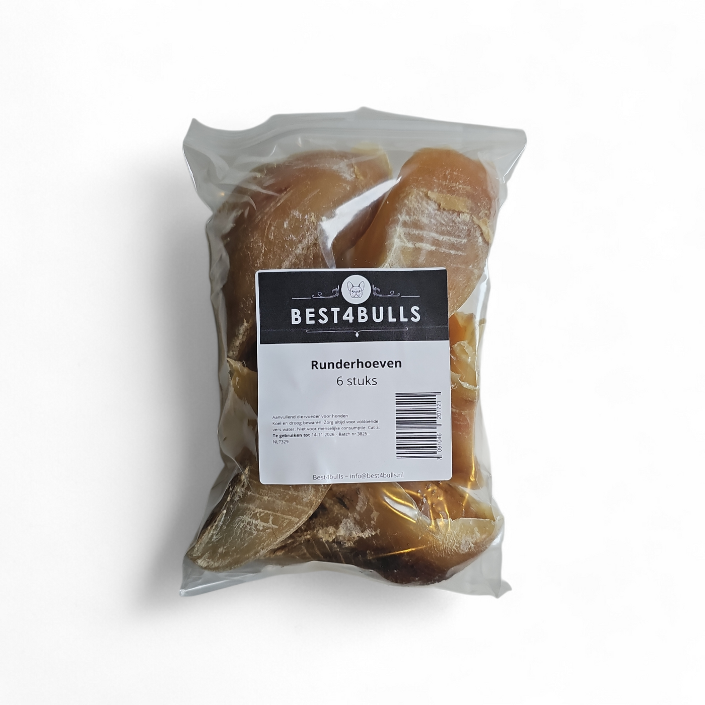 ⚠ Let op: Runderhoeven zijn niet geschikt voor puppy’s. Door de harde structuur kunnen ze schade veroorzaken aan het wisselende gebit.