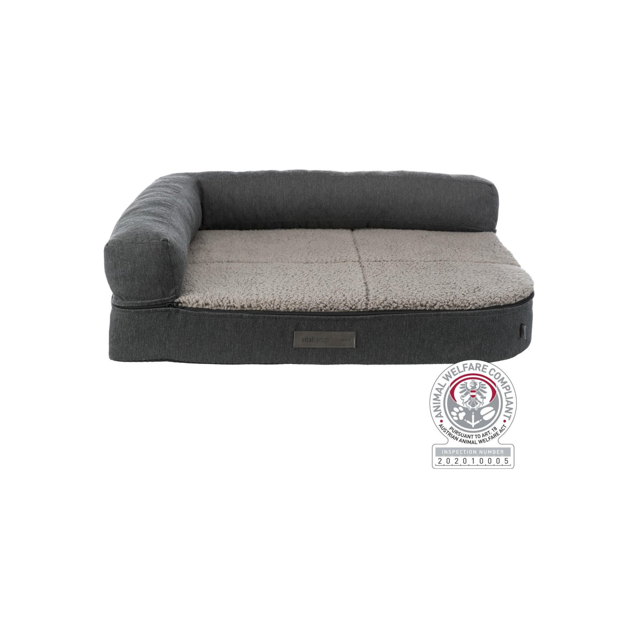 Trixie Vital Hondenmand Bendson Orthopedisch Grijs 80 x 60 cm is een comfortabele, orthopedische mand in hoekvorm voor de hond met memory-vulling in drie lagen