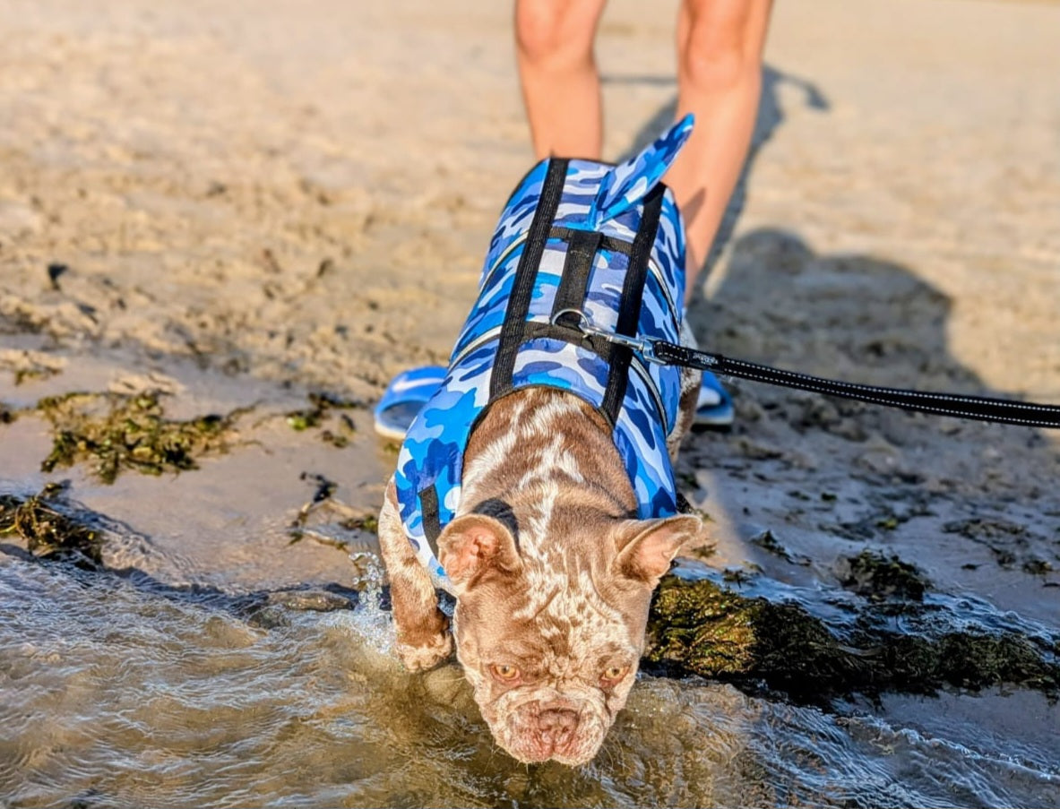 Is jouw hond dol op water? Houdt jouw viervoeter dan veilig met dit handige camouflage zwemvest speciaal voor honden! Het zwemvest is gemaakt van polyester en zorgt voor meer veiligheid tijdens spel en training in het water of trips met de boot. Het zwemvest blijft goed zitten dankzij klittenbandsluitingen en nylon riemen met clicksluitingen. Door de anatomische vorm en verstelbare banden draagt het zwemvest prettig voor de hond en zit het niet in de weg. De reddings-handgreep zorgt er bovendien voor dat jij snel in kunt grijpen wanneer nodig.